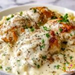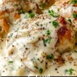 A creamy and delicious chicken dish made with a rich cream cheese sauce infused with garlic, onion, Parmesan, and Italian seasoning, perfect for a comforting weeknight dinner. This easy recipe features tender seared chicken breasts simmered in a luscious sauce, garnished with fresh parsley for a burst of color and flavor.