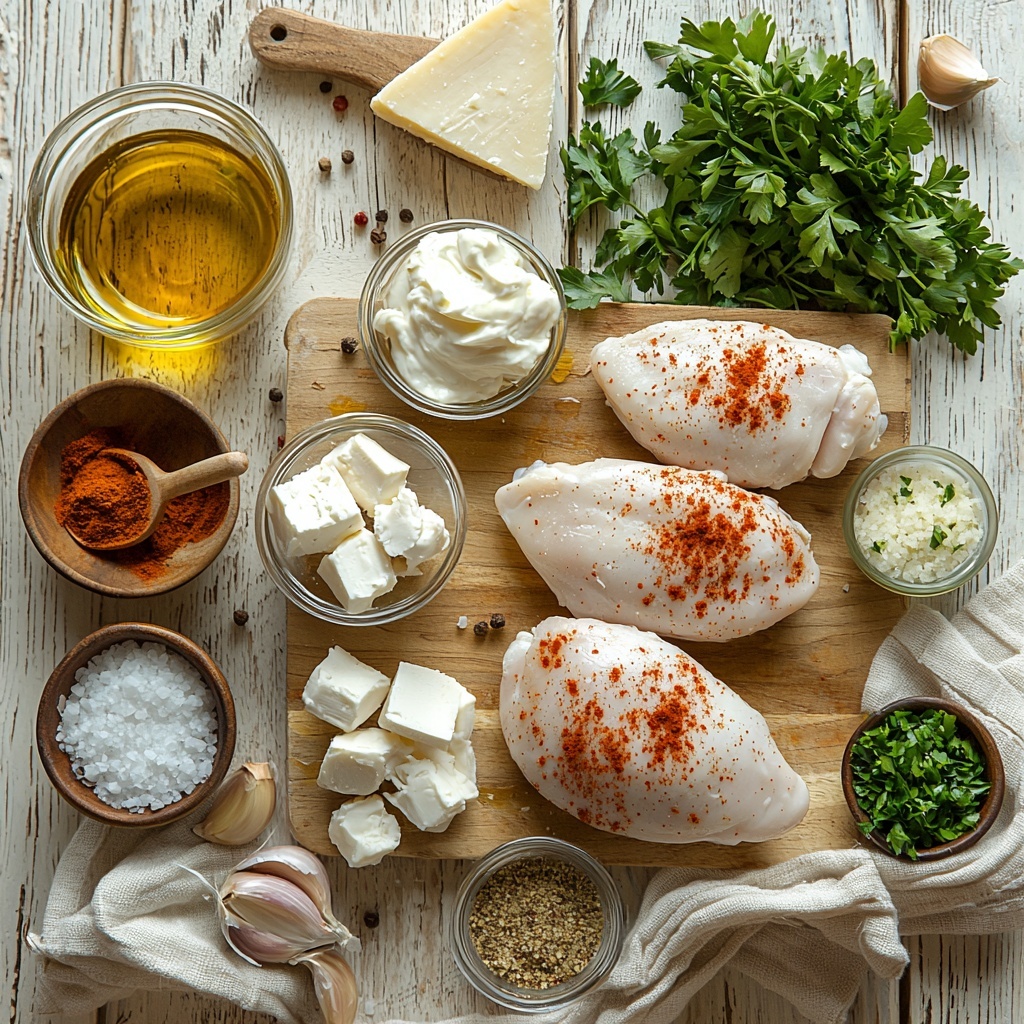 Gathering a handful of simple, pantry-friendly ingredients makes this recipe approachable and convenient. Each component plays a vital role: the chicken provides the hearty base, spices add flavor depth, while the cream cheese and Parmesan bring luscious texture and savory creaminess.