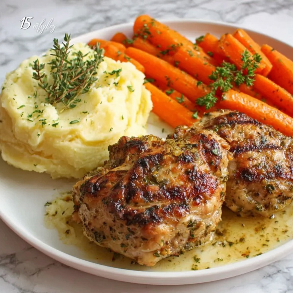 Easy Garlic Herb Chicken with Mashed Potatoes and Honey-Glazed Carrots Recipe