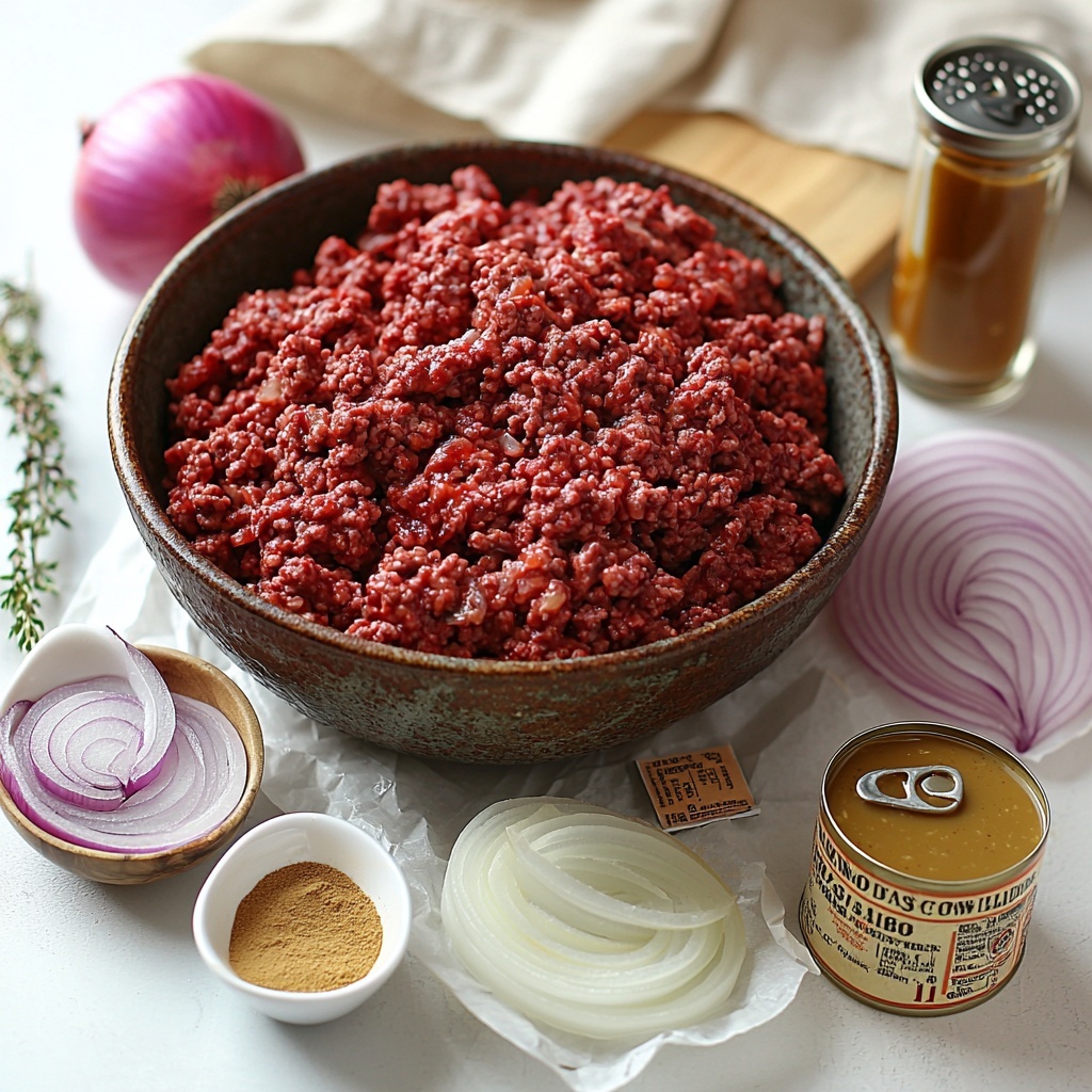 - 1 1/2 pounds ground beef: Opt for ground chuck for the perfect balance of flavor and juiciness.