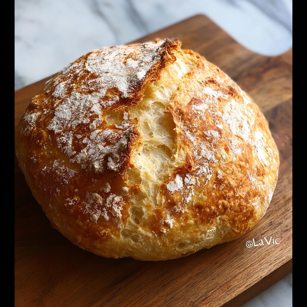 This Easy No-Knead Artisan Bread recipe produces a crusty, flavorful loaf with minimal effort. Using simple pantry staples like flour, yeast, salt, and water, the dough is mixed and left to rise slowly before baking in a hot Dutch oven. The result is a rustic bread with a chewy crust and soft interior, perfect for sandwiches, toasts, or enjoying plain.