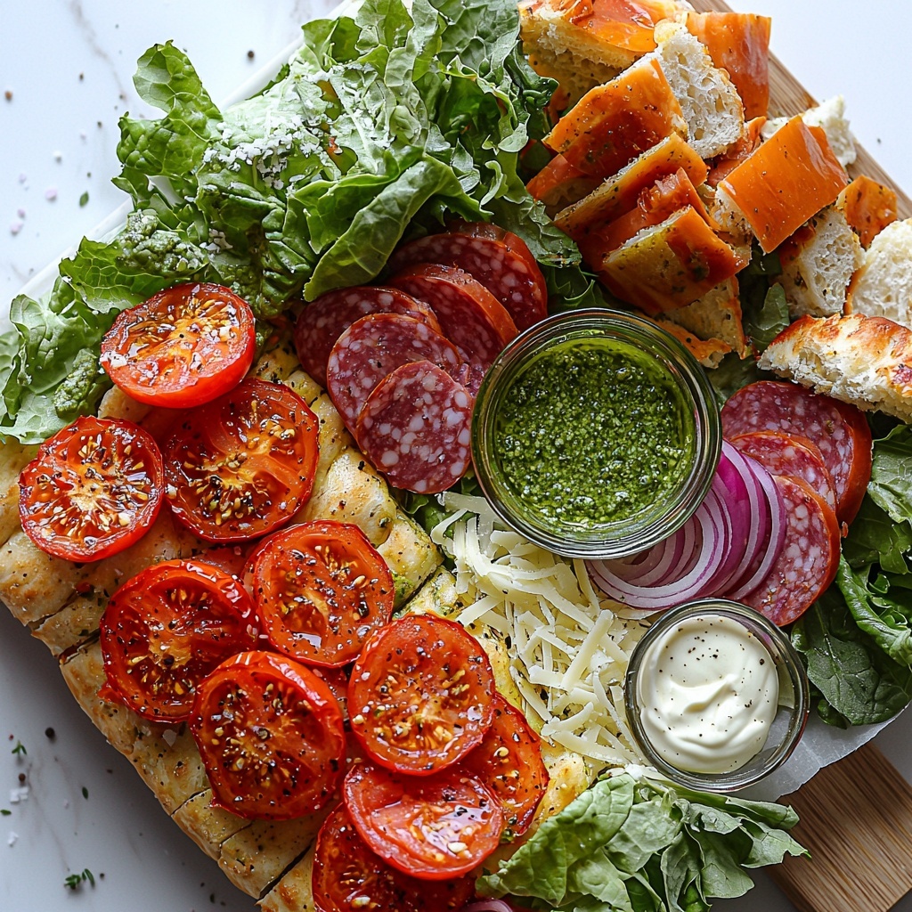 If you want to impress guests, consider serving the focaccia grinder wedges on a wooden board with small bowls of extra pesto, mayo, and Italian dressing for dipping. Layer a simple arugula salad dressed with lemon juice and olive oil alongside to add variety and color. Wrapping individual wedges in parchment paper also makes for a charming, casual presentation perfect for picnics or gatherings.