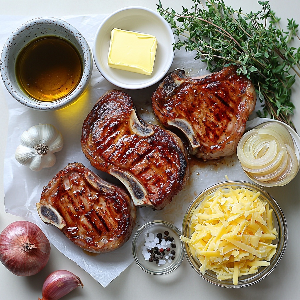 Getting the ingredients right is key to nailing this French Onion Pork Chops Recipe. Each component is simple but plays an essential role, whether contributing depth, texture, or that perfect cheesy finish that makes every forkful sing.