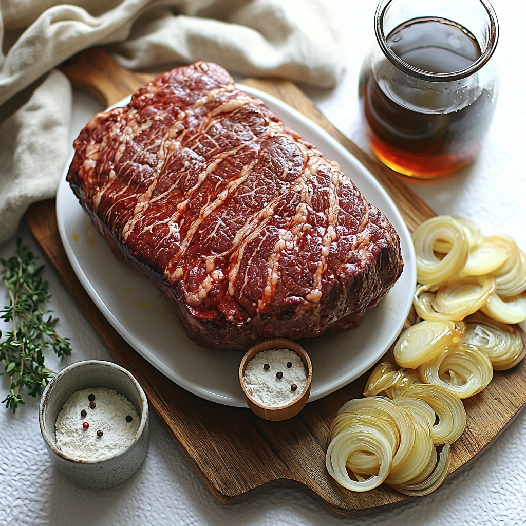 Don’t be intimidated by any lengthy ingredient list here—the French Onion Pot Roast Recipe relies on simple staples that come together to create a flavor powerhouse. Each ingredient plays an essential role, from the flour mixture that forms a subtle crust to the thyme sprigs adding a whisper of herbaceous aroma.