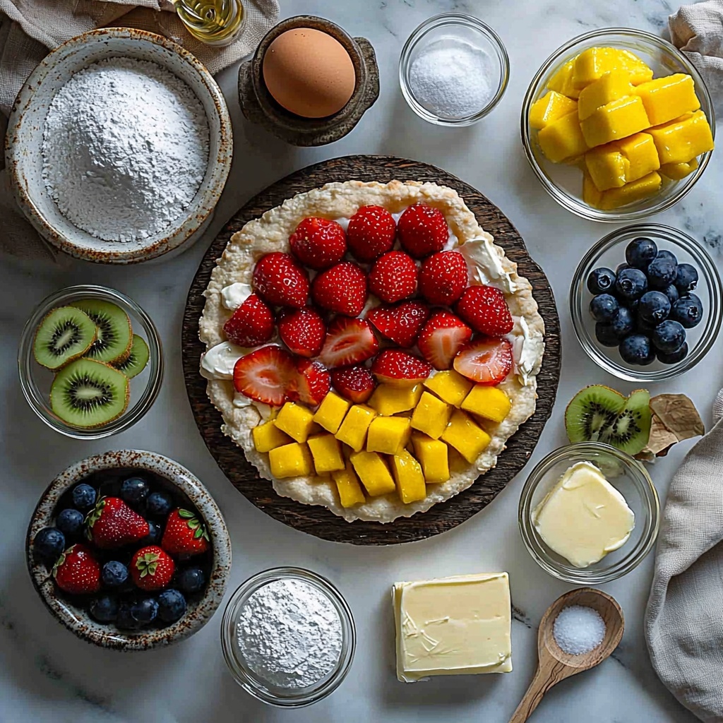 Gathering simple, fresh ingredients is the key to creating a flawless Fruit Pizza Recipe. Each element plays a vital role, from the crisp yet tender cookie crust to the luscious cream cheese frosting and the colorful assortment of fruit that adds both flavor and personality.