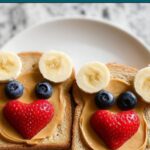 If you have any leftover Fruity Teddy Bear Toasts Recipe, store them in an airtight container in the refrigerator for up to 3-4 days. The peanut butter helps keep the bread moist, but the fresh fruit is best enjoyed quickly for maximum flavor and texture.