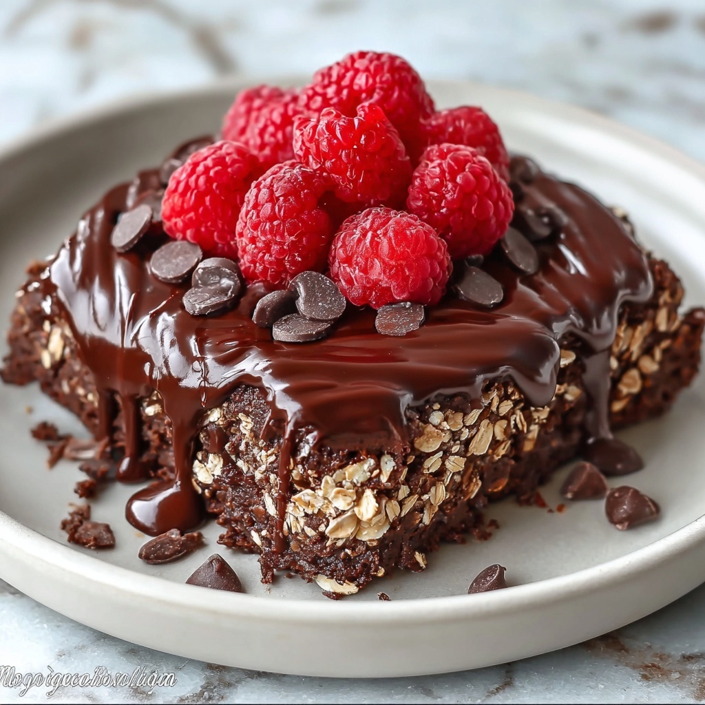 Enhance your baked oats with a sprinkle of fresh berries or sliced bananas to add brightness and a burst of natural freshness. A dollop of Greek yogurt or a drizzle of nut butter can bring creamy richness and an inviting contrast to the fudgy chocolate base.