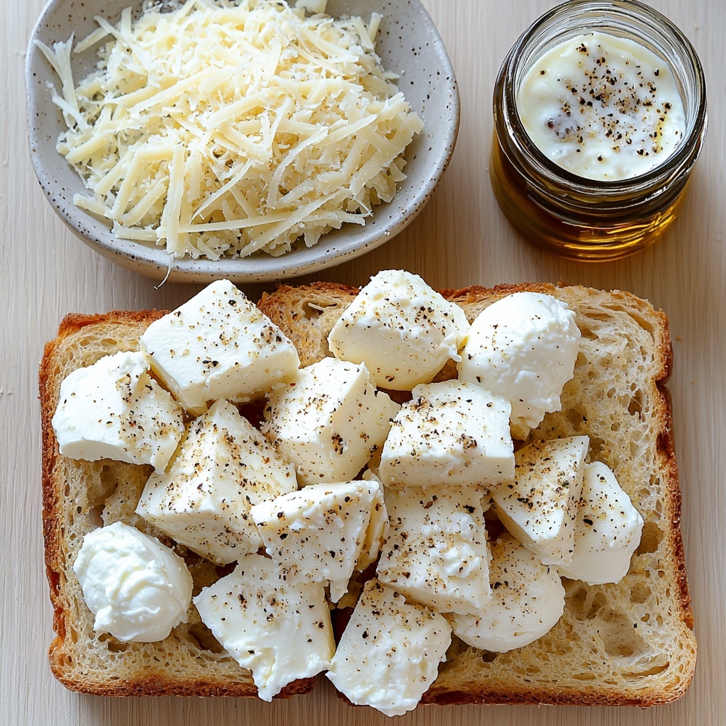 • 1 loaf garlic bread (cubed): The crunchy, flavorful foundation that carries all the cheesy goodness.