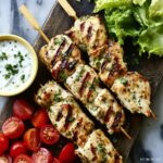 Grilled Chicken Souvlaki is a classic Greek dish featuring tender, marinated chicken pieces grilled to perfection on skewers. Served with warm pita, fresh tomatoes, crisp romaine, and creamy homemade tzatziki sauce, this weeknight meal is bursting with Mediterranean flavors and easy to prepare.