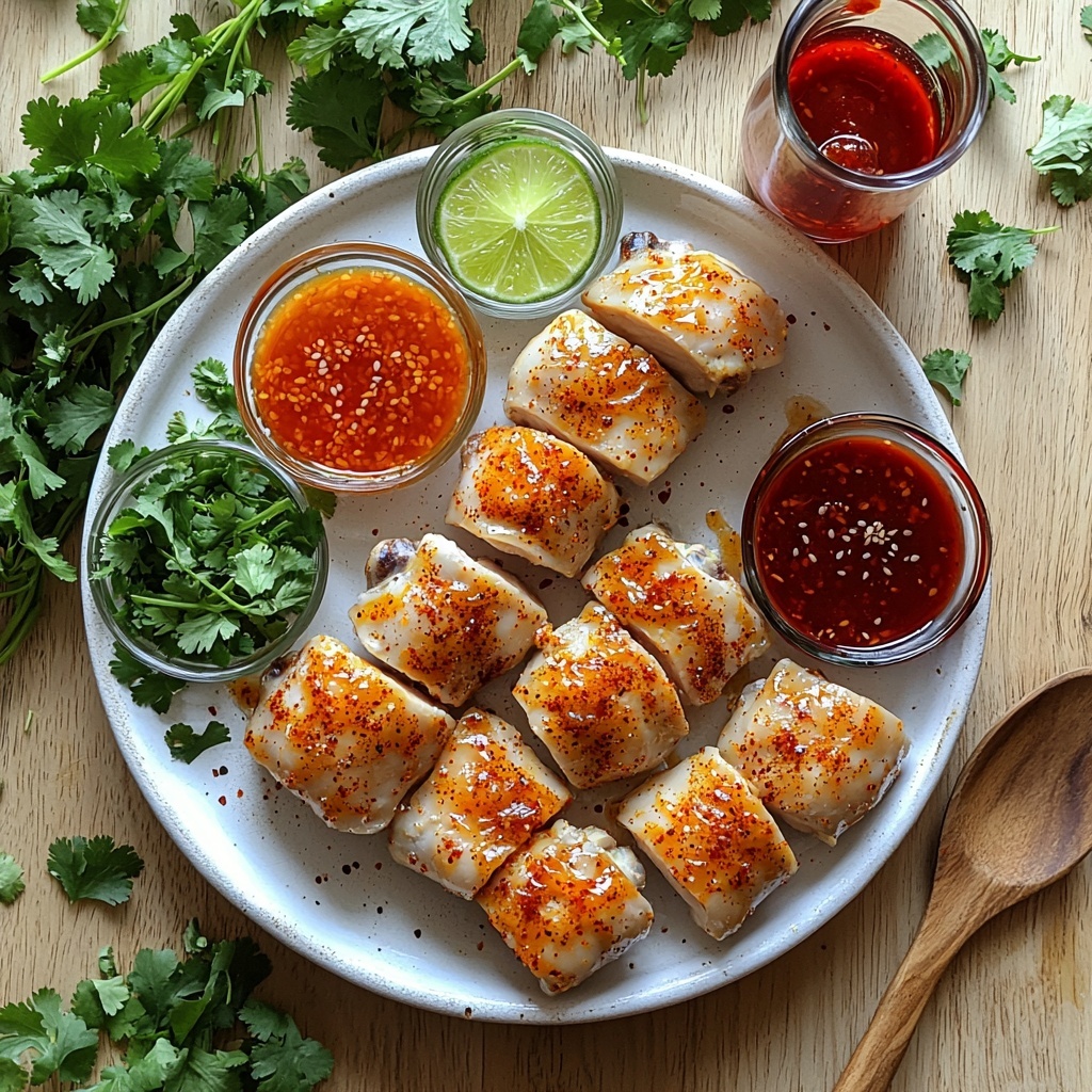 - Prepare the glaze: In a small bowl, whisk together the sweet chili sauce, soy sauce, lime juice, sriracha, and chopped cilantro until well combined; set aside for later use.