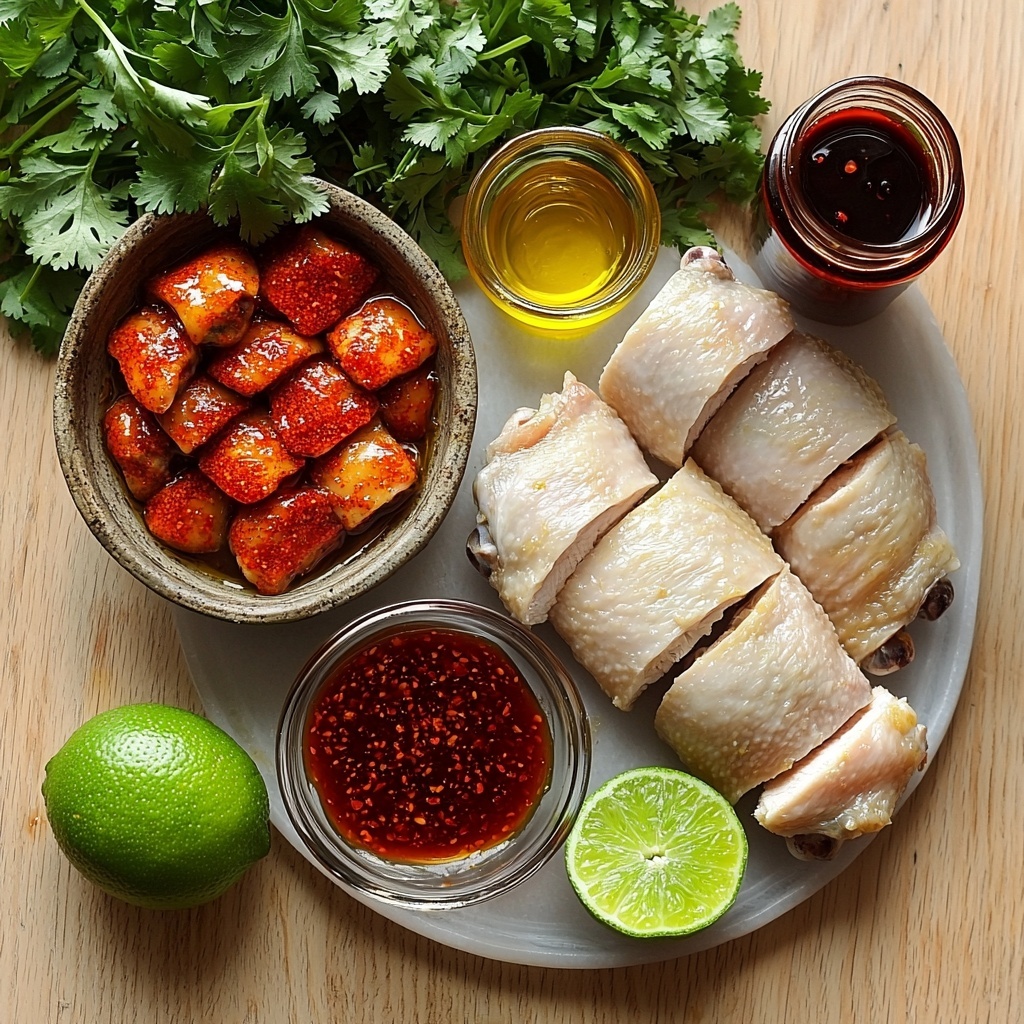 In a small bowl, combine the sweet chili sauce, soy sauce, lime juice, sriracha, and freshly chopped cilantro. Whisk these together until smooth. This glaze is your flavor powerhouse—its sweet, tangy, and spicy notes will be brushed over the chicken, creating a mouthwatering caramelized finish.