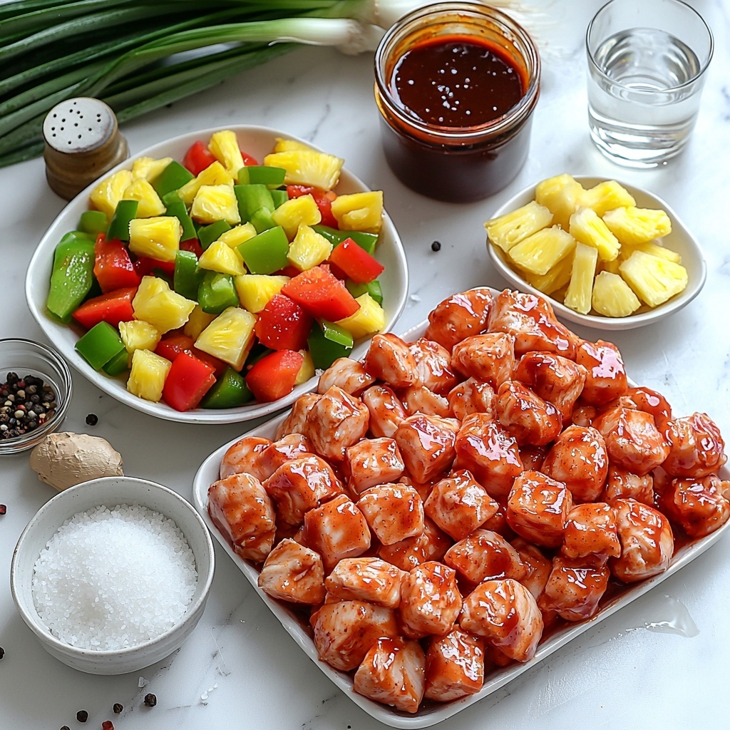 This recipe calls for simple, accessible ingredients that you probably already have in your kitchen. Each item plays a crucial role in delivering those vibrant flavors, from the tender chicken to the bright punch of pineapple and the smoky barbecue sauce that ties everything together beautifully.
