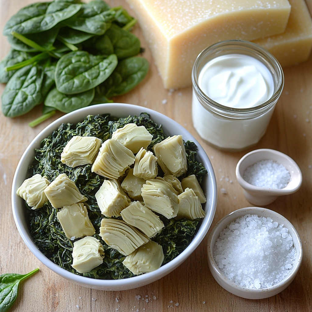 Getting the ingredients right is the key to nailing this Healthy Spinach Artichoke Dip Recipe. Each component plays a special role, from the tangy Parmesan to the tender artichoke hearts, building flavor, creaminess, and color without unnecessary heaviness.