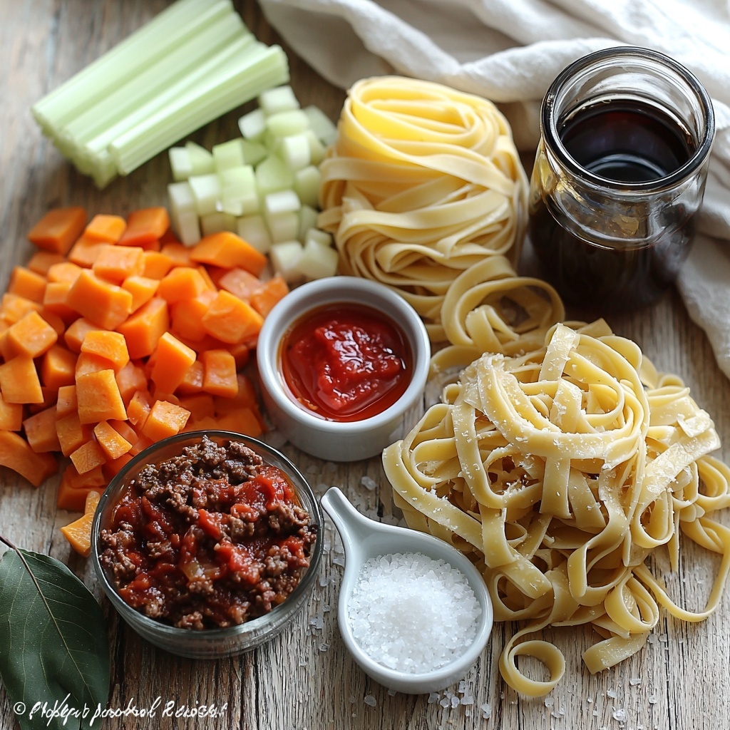 The magic of this Hidden Veggie Bolognese Recipe lies in its simple yet essential ingredients. Each component plays a vital role, whether it’s the olive oil for a silky base, fresh vegetables for subtle sweetness and texture, or the rich beef and tomato elements that create that classic Bolognese depth.