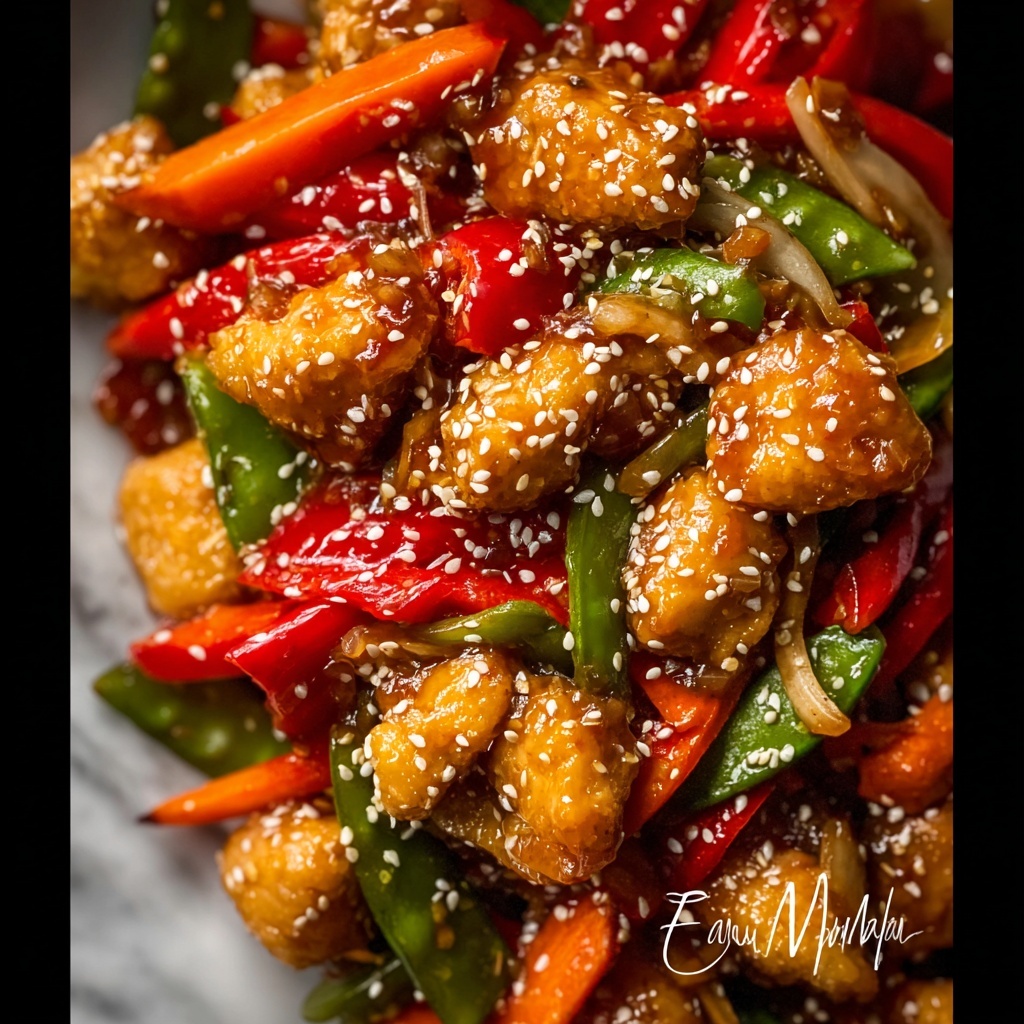 A flavorful Honey Garlic Chicken Stir Fry combining tender chicken thighs with crisp snap peas, bell peppers, and carrots, all tossed in a savory honey garlic sauce. This quick and easy stir fry is perfect for a weeknight dinner and can be served over rice for a complete meal.