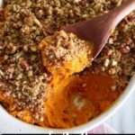 - Add Topping: Sprinkle the crunchy topping evenly over the mashed sweet potatoes in the baking dish, covering the surface completely.