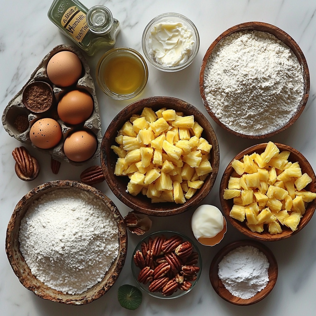 Putting this Hummingbird Cake Recipe together is surprisingly simple thanks to its straightforward ingredients. Each one plays a key role, whether it’s creating the moist texture, warming the flavors, or adding a touch of crunch—let’s dive into what you’ll need.