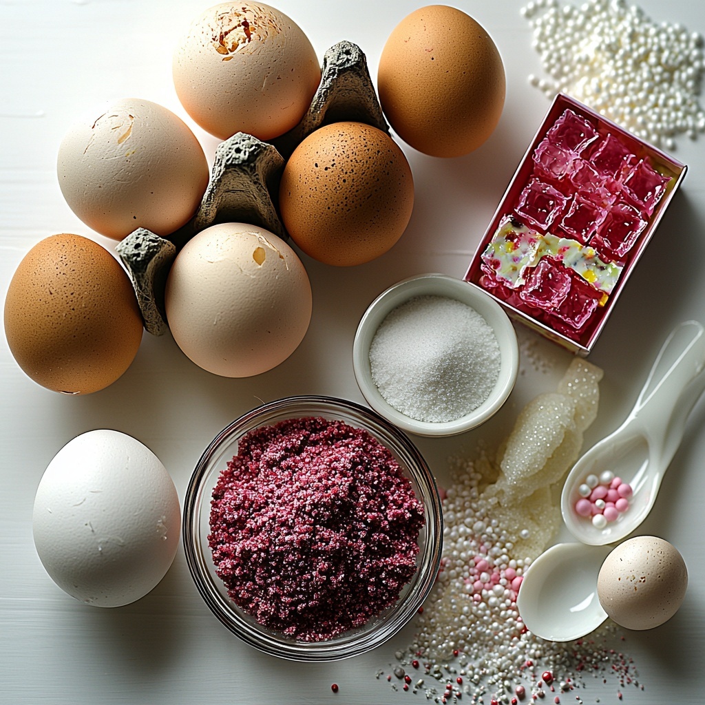 Gathering your ingredients for the Jello Meringue Cookies Recipe couldn’t be easier. Each component plays a crucial role: from creating structure to adding sweetness and a pop of color and flavor.