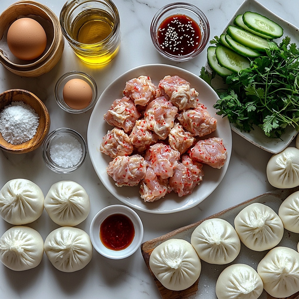 The charm of this Korean Chicken Bao Recipe lies in its simple but carefully chosen ingredients. Each one plays a vital role in layering the texture and flavor of the dish, from the tender chicken to the vibrant sauce and refreshing garnishes. Let’s take a look at these essentials that make all the difference.