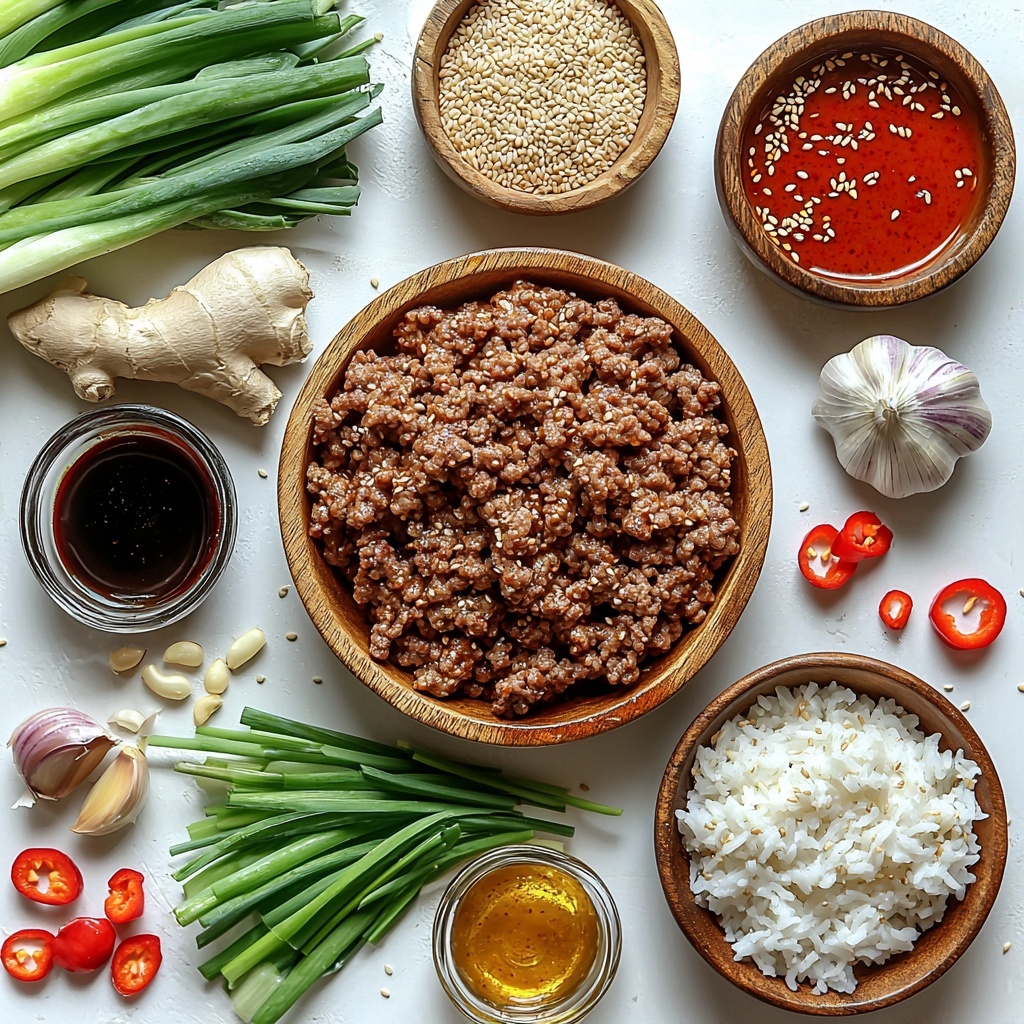 Garnishing is where you can really personalize this Korean Ground Beef Bowl Recipe. Fresh green onions give a crisp bite that contrasts the tender beef, while sesame seeds add a lovely nutty crunch. For adventurous eaters, adding thin slices of red chili pepper brings a lively, spicy punch that wakes up the palate.