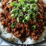 Layer a bowl with your choice of cooked white or brown rice, then spoon the flavorful beef mixture on top. Garnish with sliced green onions and a sprinkle of toasted sesame seeds for extra texture and visual appeal. Add red chili peppers if you want to dial up the heat and color.