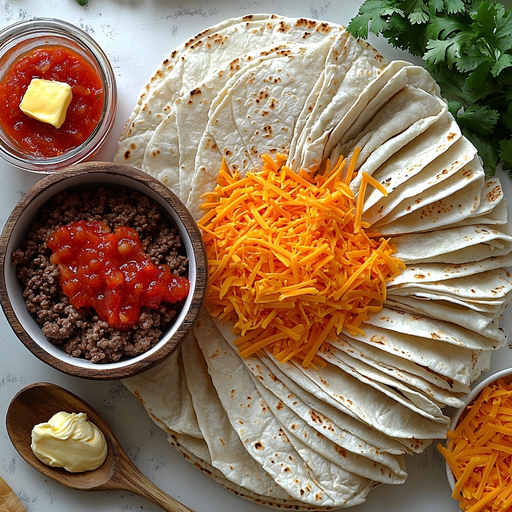 - Assemble the tacos: Lay a tortilla flat on a clean surface. Spread a generous spoonful of the cream cheese and salsa mixture in the center. Add a portion of the seasoned beef on top, then sprinkle with shredded cheddar cheese.