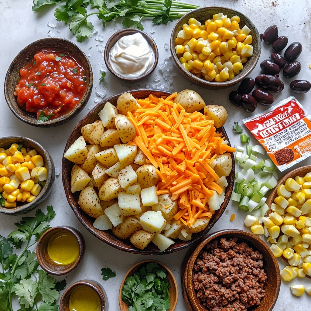 Simple yet vibrant, each ingredient in this recipe plays a vital role in building layers of flavor and texture. From the earthy potatoes to the zesty spices and creamy toppings, these essentials combine to create an unforgettable meal experience.