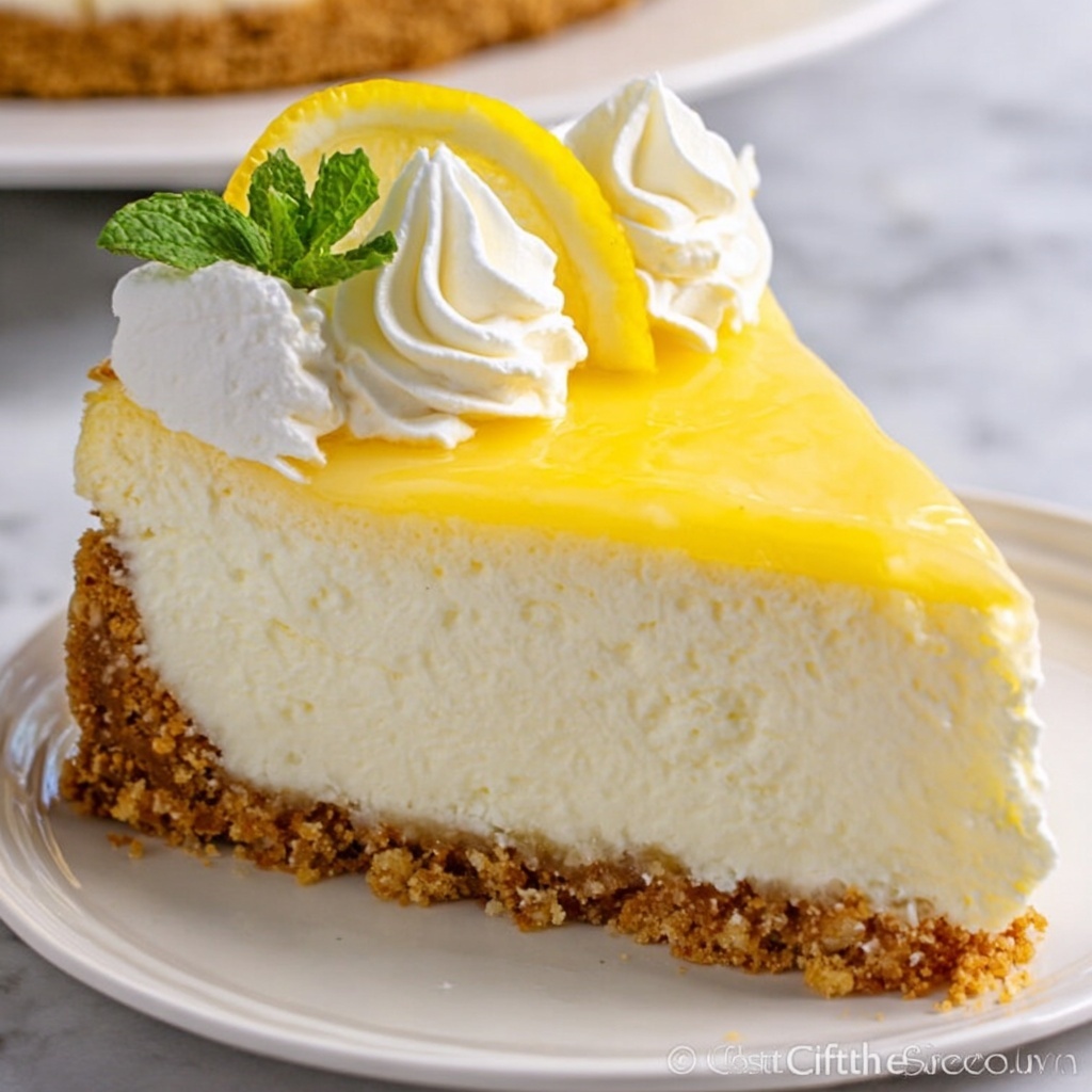 - Add Lemon Curd Topping: Before serving, spread the lemon curd evenly over the top of the chilled cheesecake. Add dollops of whipped cream around the edges or as desired for garnish.