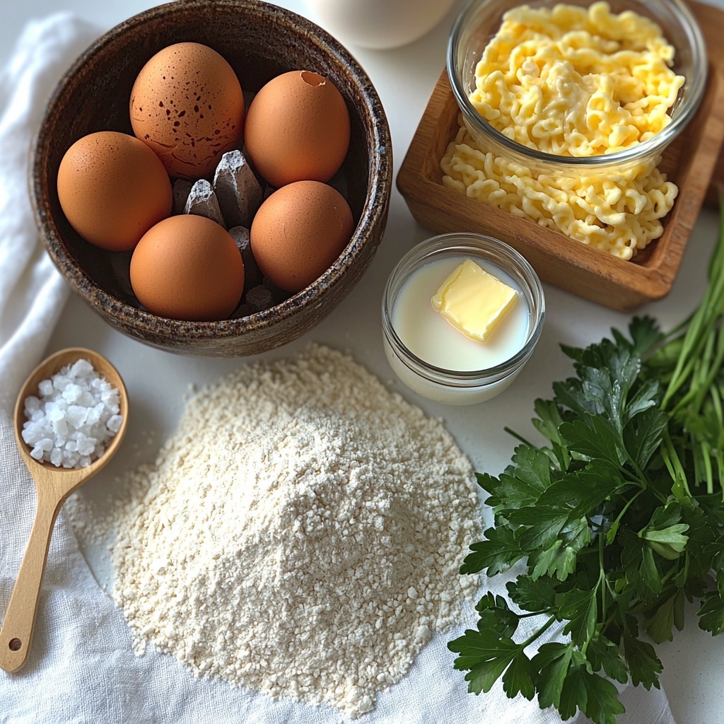 Gathering the right ingredients is the key to nailing this recipe. These simple staples all play a crucial role in creating spaetzle that is fluffy, tender, and full of flavor, with just the right texture to make every bite irresistible.
