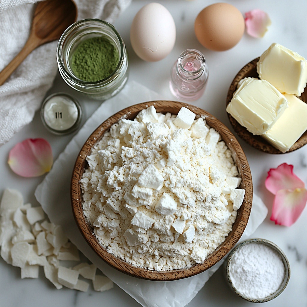 Each ingredient in this Matcha Rose Heart Macarons Recipe plays a special role—whether it’s creating that light, airy texture, adding vibrant green hues, or infusing delicate floral notes. The ingredient list is straightforward but essential for nailing the perfect macaron experience.