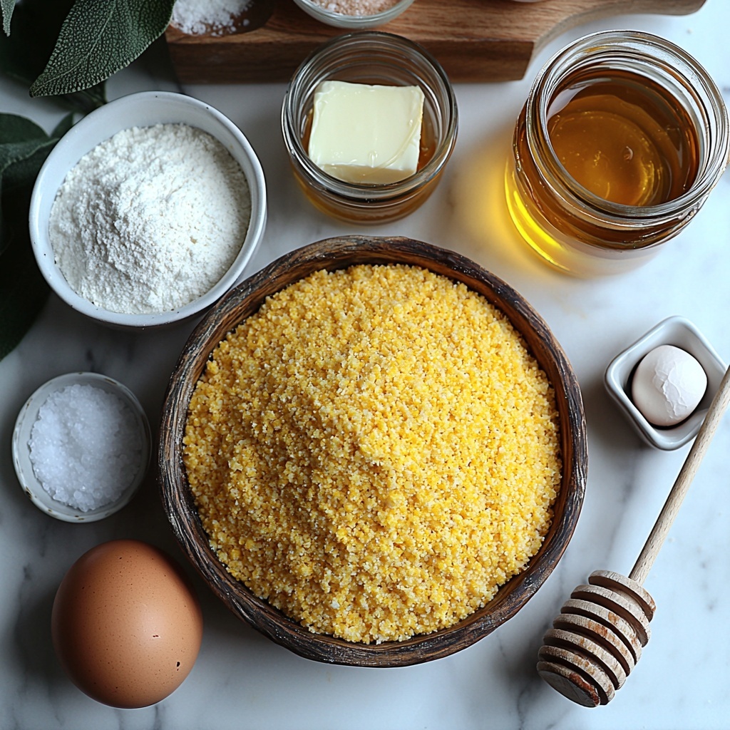 The magic of these Melt-in-Your-Mouth Southern-Style Honey Butter Cornbread Poppers Recipe lies in its simple, yet thoughtfully chosen ingredients. Each one plays a crucial role — from the cornmeal’s classic texture to the sweet honey butter glaze that finishes each popper with rich indulgence.