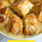 6. Assemble and Bake: Pour the butter and brown sugar mixture evenly over the layered biscuit pieces in the pan. Place the Bundt pan in the preheated oven and bake for 35 to 40 minutes until the top is deeply golden brown and the biscuits are cooked through. If the top starts to brown too quickly, loosely cover with foil during the last 10 minutes of baking.