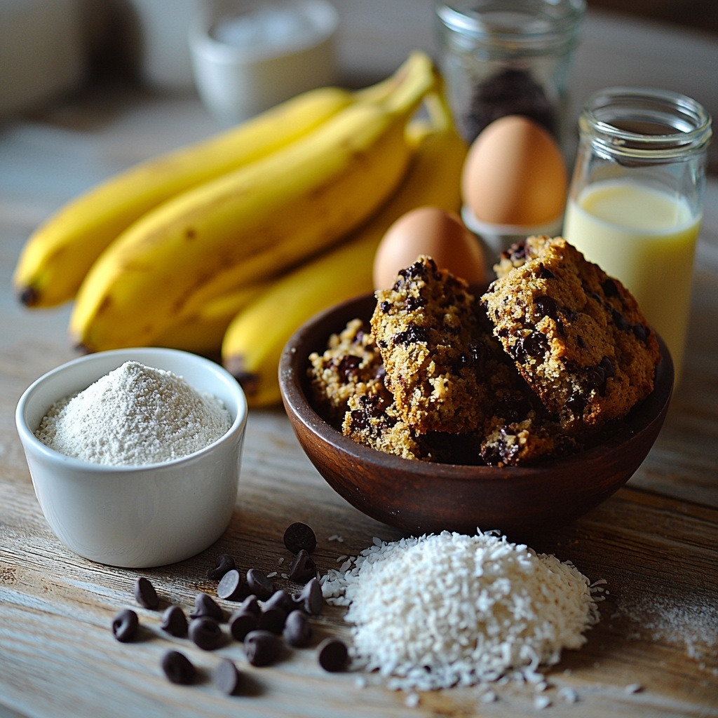 Gathering the right ingredients is the first step to baking your own batch of these delicious monkey muffins. Each one plays an essential role: flours provide structure and texture, bananas add natural sweetness and moisture, and the combination of coconut with chocolate chips gives every muffin a delightful twist that makes them uniquely irresistible.