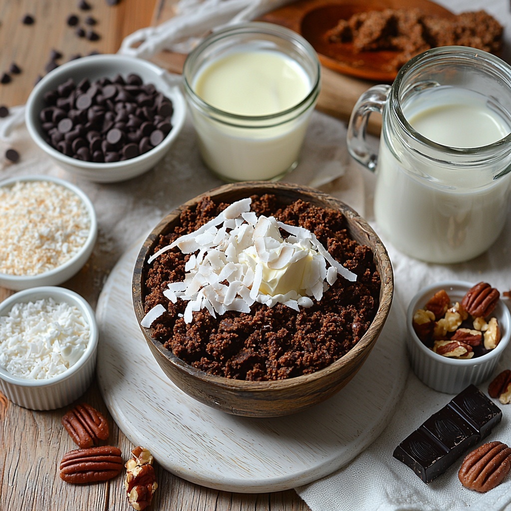 • 1 cup sweetened shredded coconut: Gives that traditional German chocolate texture and tropical flair.