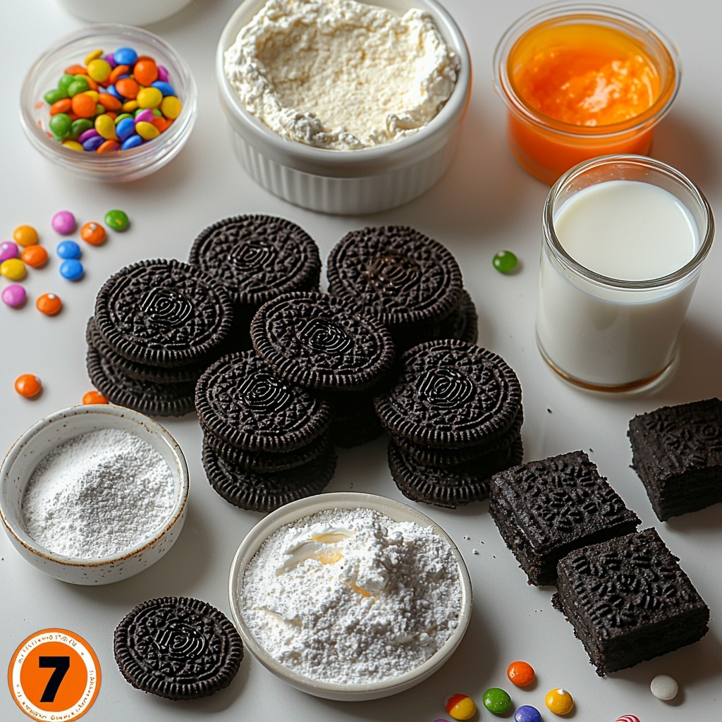Gathering these ingredients is a breeze, but each one plays an essential role in bringing the No-Bake Halloween Cheesecake Cups Recipe to life. From the crunchy Oreo base to the creamy, colorful cheesecake layers, every item is crucial for taste, texture, and that festive Halloween vibe.