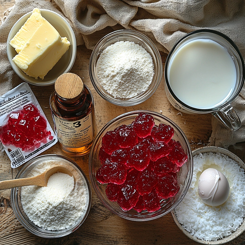 Gathering your ingredients for this cake is wonderfully straightforward, but each one plays a key role in crafting the perfect pink jelly cake. The butter and sugar create a tender crumb, the jelly crystals infuse the irresistible pink hue and flavor, and the coconut adds a delightful chewiness that contrasts beautifully with the soft sponge.