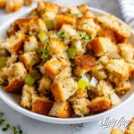 Fresh herbs really make a difference in flavor and aroma with this Old Fashioned Stuffing Recipe. However, if fresh herbs aren’t available, you can substitute dried herbs. Use about a third of the amount since dried herbs are more concentrated.
