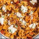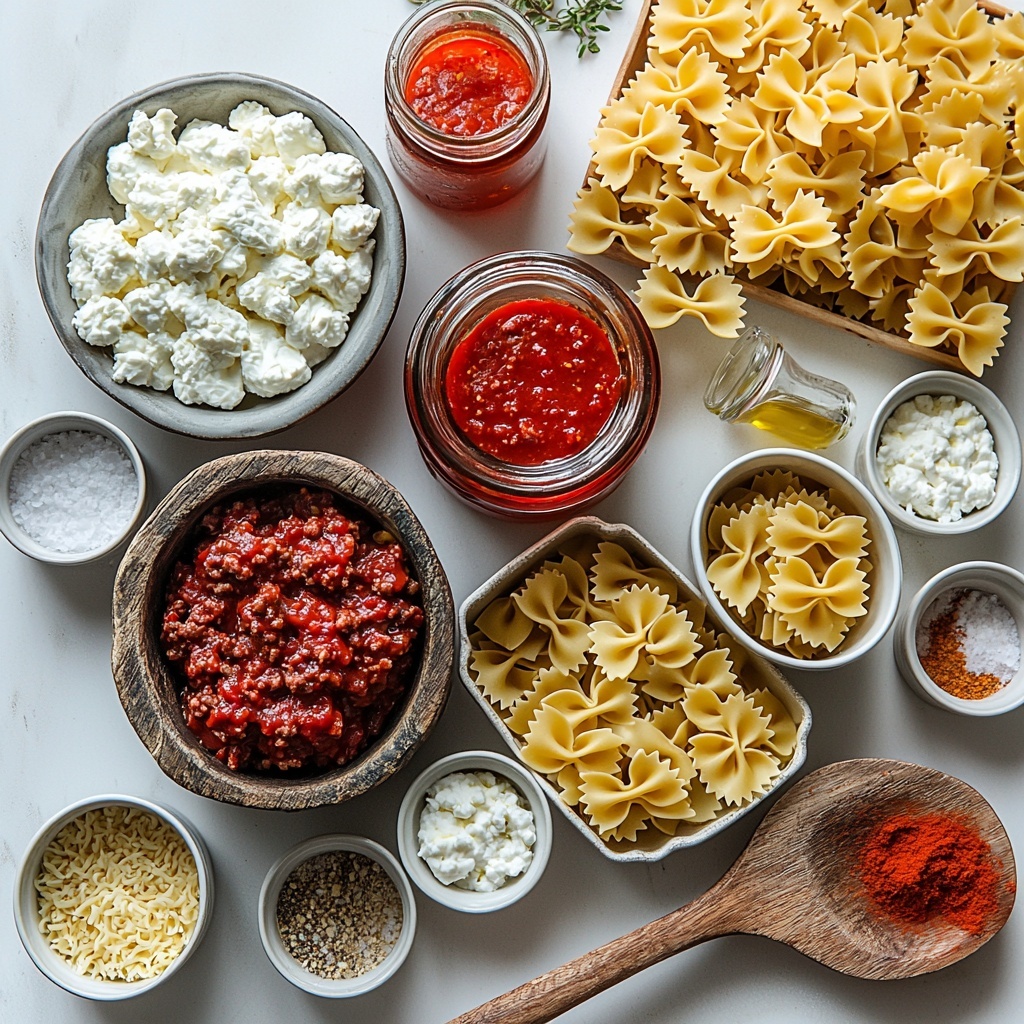 This One Skillet Lasagna is a quick and easy twist on the classic Italian dish, perfect for busy weeknights. Ground beef is browned and simmered with tomato sauce and seasonings, then combined with uncooked bowtie pasta and cooked right in the skillet. Topped with a blend of mozzarella, cottage, and parmesan cheeses, it delivers all the comforting flavors of traditional lasagna without the fuss of layering and baking.