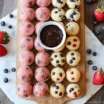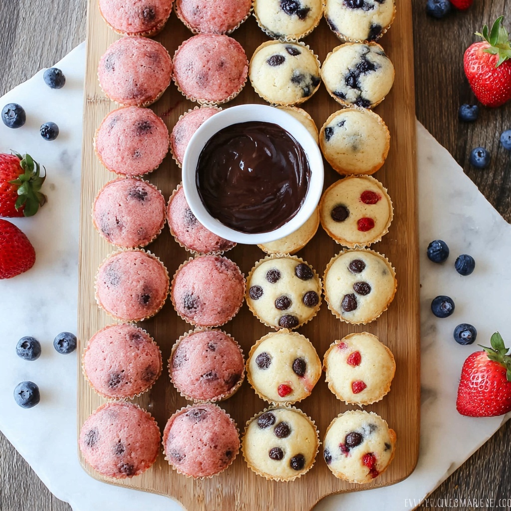 Fill each mini muffin cup about two-thirds full with the batter. If you’re using optional toppings, now’s the time to press 3 or 4 blueberries, a few diced strawberries, mini chocolate chips, or even sprinkles into each one. They bake right in, melting or softening to perfume each bite with extra flavor and color.