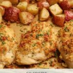 - Prepare Chicken: While the potatoes cook, coat the chicken breasts in a mixture of olive oil, minced garlic, parmesan, breadcrumbs, cracked pepper, and sea salt. Remove the pan with potatoes from the oven and arrange the chicken pieces alongside the potatoes.