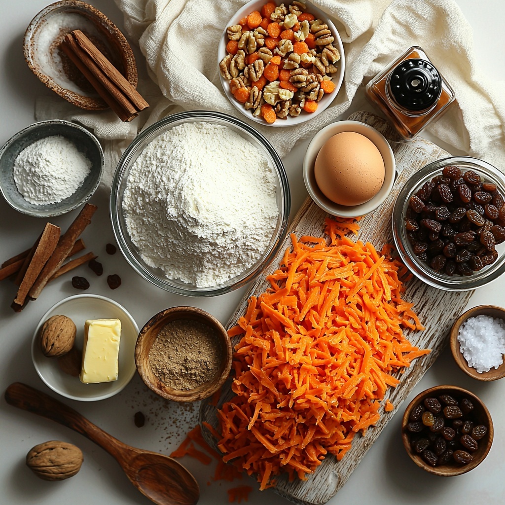 • Grated carrots: The star ingredient that adds moisture, natural sweetness, and color.