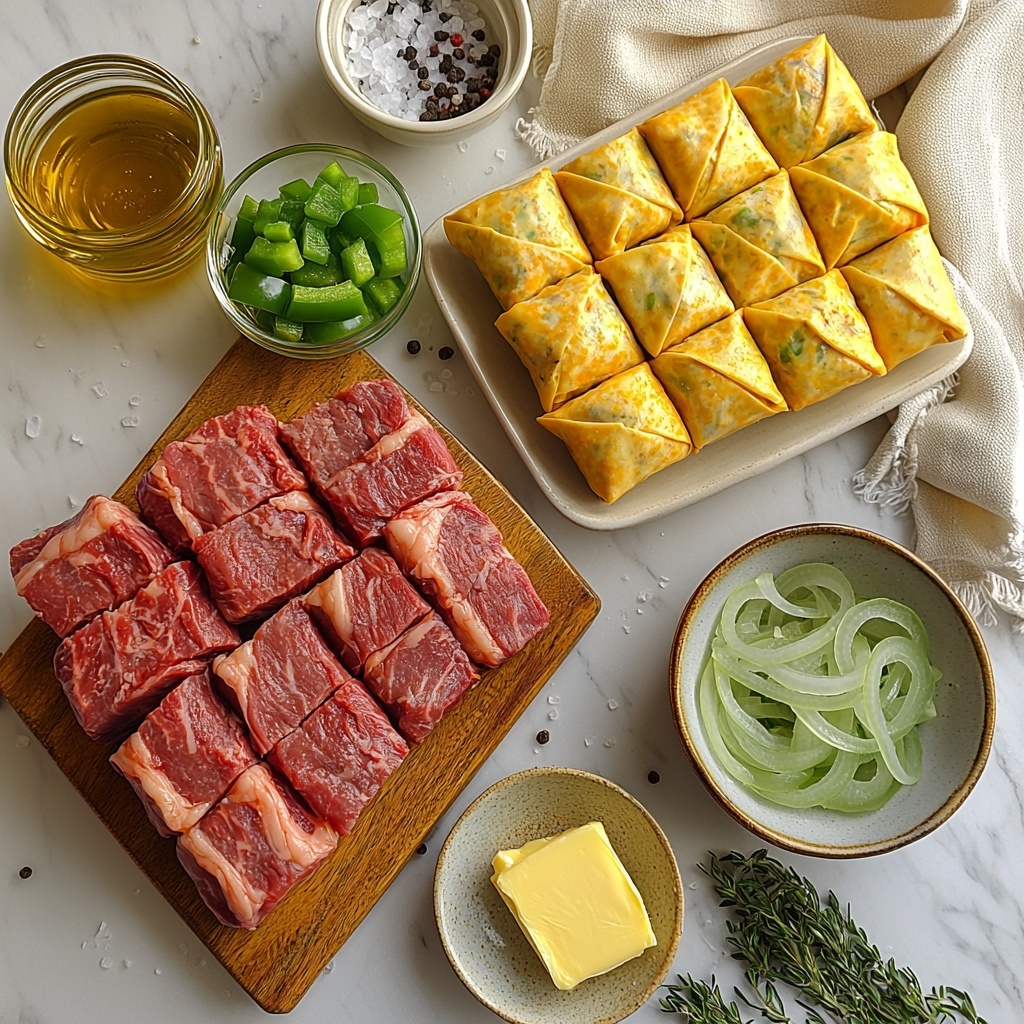 The magic of this Philly Cheesesteak Egg Rolls Recipe lies in its simple yet essential ingredients, each contributing to the dish’s vibrant flavors and textures. From buttery vegetables that soften to sweet perfection, to juicy ribeye that delivers that authentic cheesesteak taste, every element plays a key role in making each bite unforgettable.