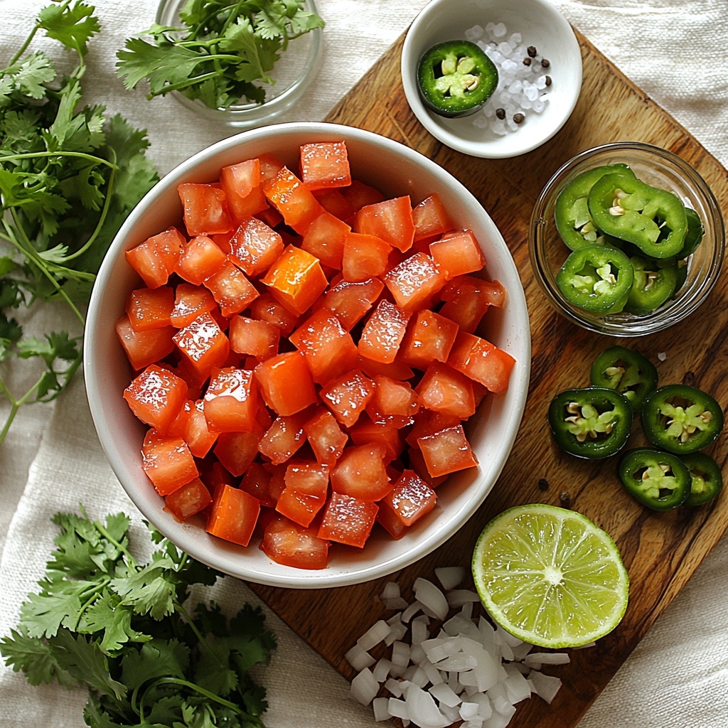 - Dice Tomatoes: Dice the tomatoes into uniform pieces to ensure even texture throughout the Pico de Gallo.