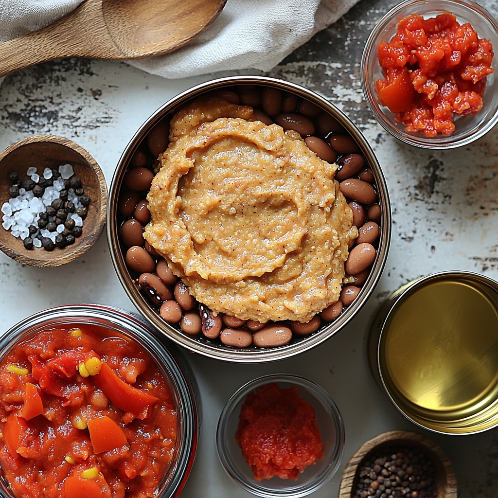 Getting this soup together is wonderfully straightforward, thanks to a handful of simple yet essential ingredients. Each one plays a starring role, from the creamy texture of refried beans to the vibrant tang of crushed tomatoes and the hearty goodness of whole pinto beans.