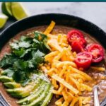 Ladle the soup into bowls and pile on your favorite toppings. Melting in some cheese and topping with crispy tortilla chips is a personal favorite that adds a luscious, crunchy contrast that turns every bite into a celebration.