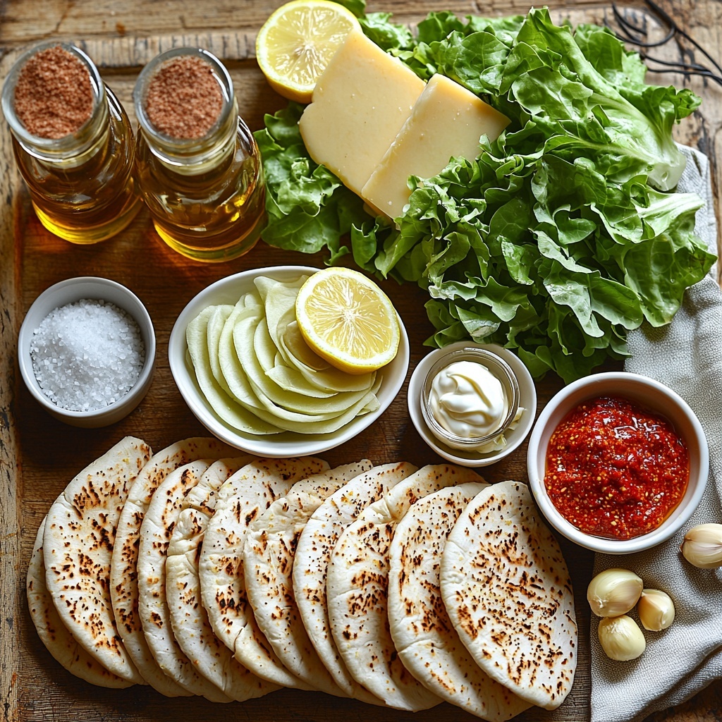 - Pita bread wraps: Soft, pillowy vessels for all the delicious fillings (feel free to substitute with your favorite wraps).