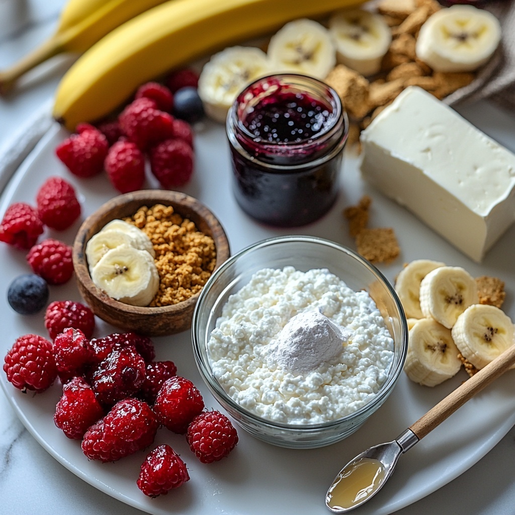 Every ingredient in this recipe is a star that plays a vital role in creating the perfect balance of creamy, crunchy, sweet, and fresh. Each component is straightforward but essential, ensuring a harmonious texture and taste that never overpowers. Collect these staples to bring your guilt-free cheesecake jars to life in no time.
