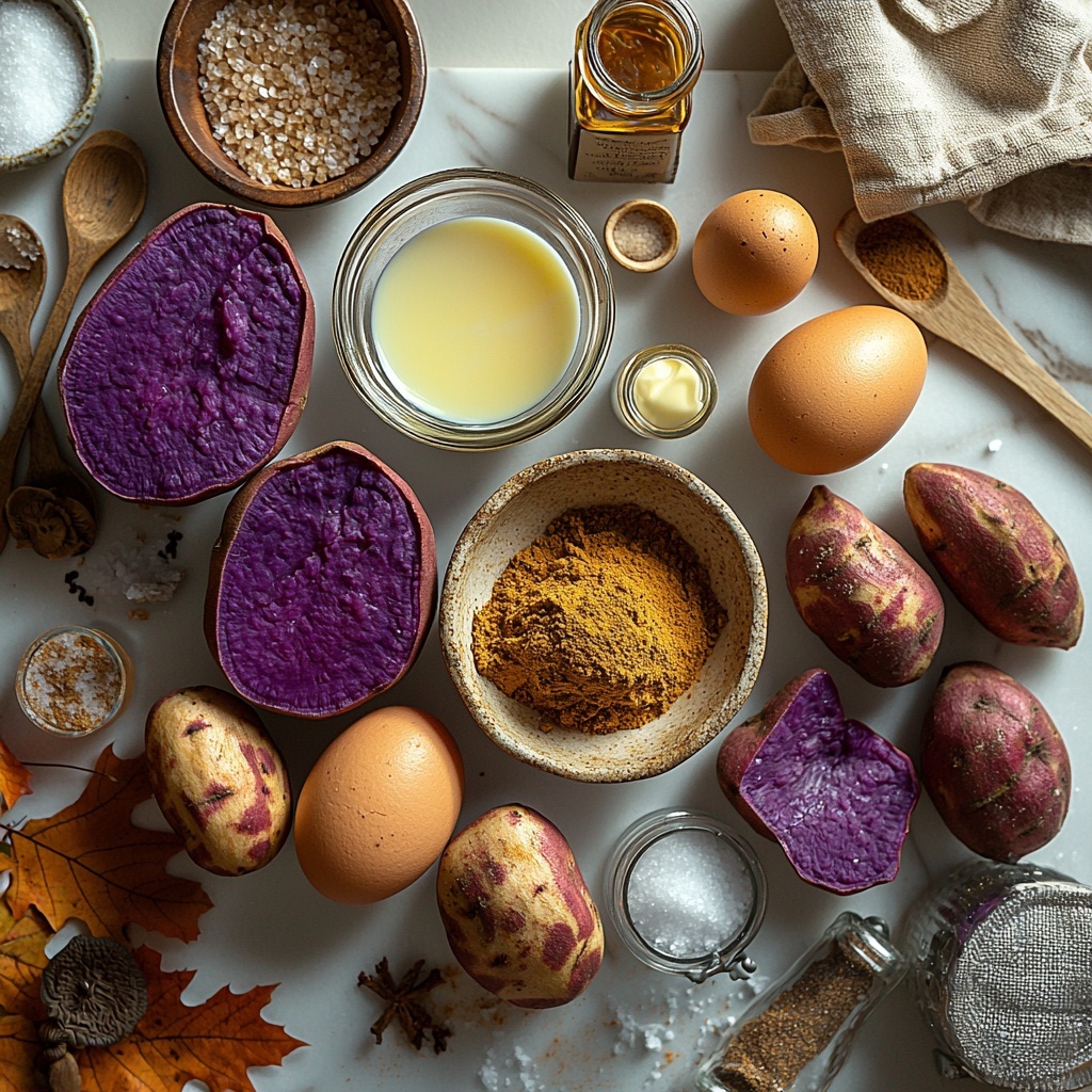 Don’t let the list intimidate you—each ingredient is straightforward but plays a vital role in perfecting this pie. From the naturally colorful purple sweet potatoes to the silky Swiss meringue, these ingredients combine to deliver a balanced, irresistible dessert.