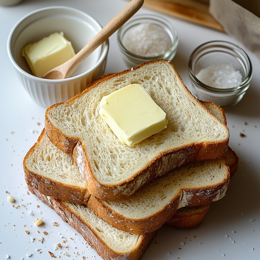 - Butter the Bread: Using a knife or spatula, spread a generous layer of the prepared butter mixture evenly on both sides of each thick-cut slice of Texas toast to ensure full flavor coverage.