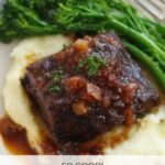 - Serve: Plate the short ribs alongside mashed potatoes and steamed broccolini. Spoon pan juices over top, and garnish with extra thyme leaves and a sprinkle of freshly cracked black pepper if desired.